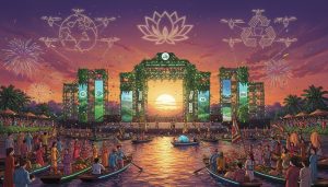 깔끔하게 가득 찬 벤닌키에우에서 열린 깜뜨어 수상 문화 축제